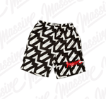 • Custom black-and-white tessellation covering the entire short, showcasing the iconic double-M pattern.